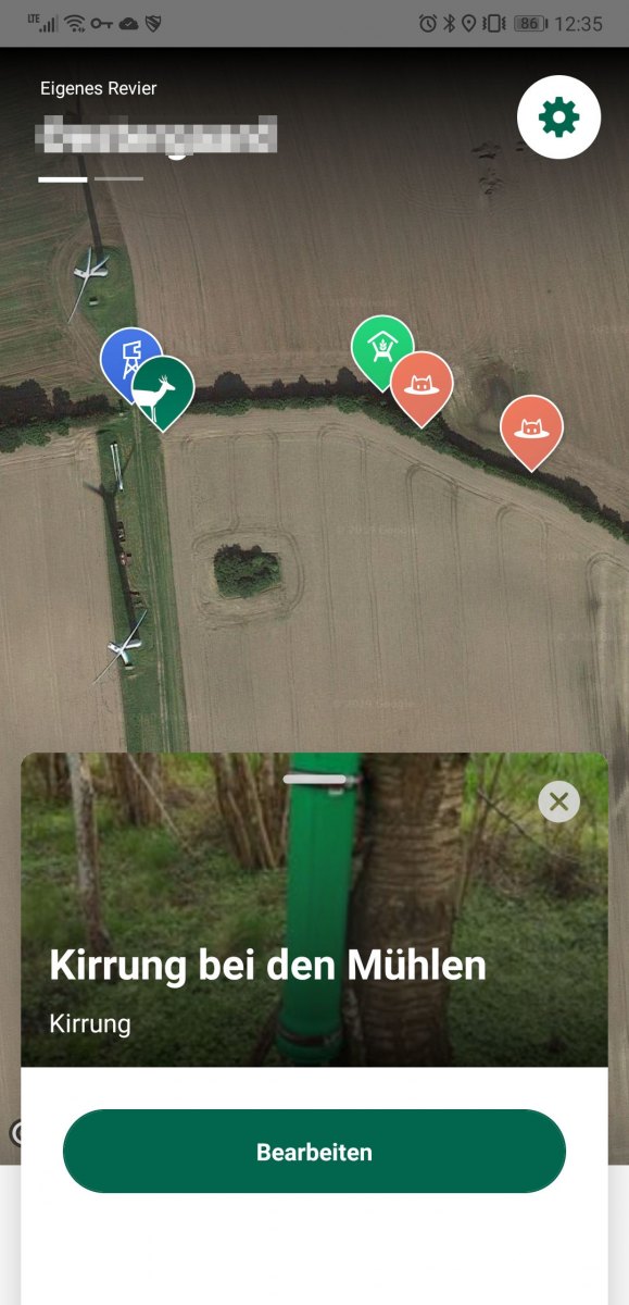 Zunächst muss man sich registrieren und einen Account anlegen – außer Name und Mailadresse wird aber nicht viel mehr an privaten Daten abgefragt – sehr gut! Im weiteren Verlauf kann man via einer GoogleMaps Karte das Revier einzeichnen und benennen – das praktische: Ich kann weitere Personen zu diesem Revier hinzufügen, sodass diese gemeinschaftlich auf alle Daten zugreifen können. In meinem Fall ist dies meine Partnerin (wir haben beide einen Begehungsschein) und der Revierinhaber selbst, den ich schnell von der App hab überzeugen können. Auch eine Anlage mehrerer Reviere ist im Bedarfsfall möglich.